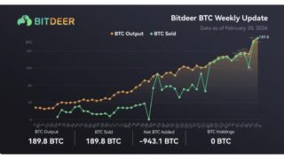 ● ビットコインマイナーのBitdeerは、保有していたビットコインと新規マイニング分をあわせて943BTCを売却、保有高はゼロになった。●...