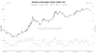 【CoinDesk Summary】 ● ビットコイン(BTC)の14日相対力指数(RSI)は、checkonchainによると、今月、史上...