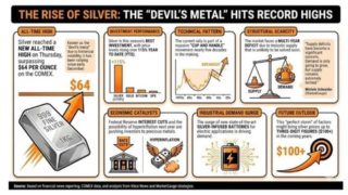 銀が64ドルを突破、勢いは止まらないラリーが続行中「悪魔の金属」と呼ばれる銀は、その歴史的なボラティリティからそう呼ばれており、木曜日にCO...