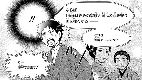 (C)まんが:おおつき べるの・シナリオ:川﨑 堅二・監修:北里研究所 北里柴三郎記念室/集英社